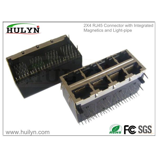 Stacked 2x4 RJ45 Jack With 100Base transformer and light-pipe LEDs Images |